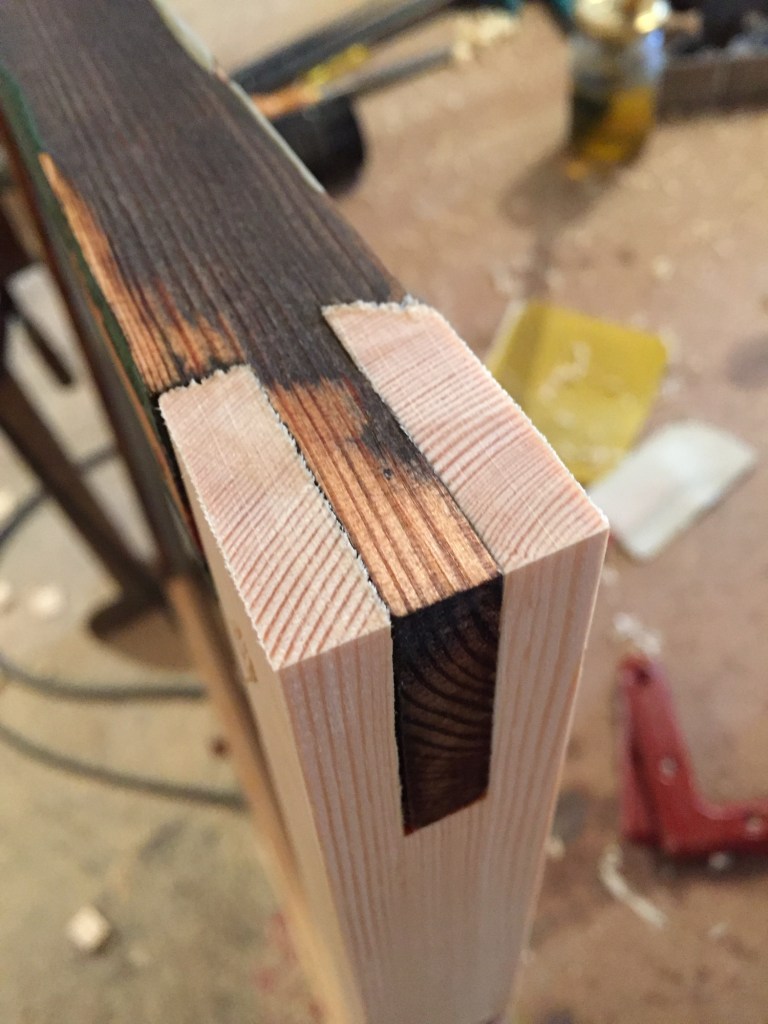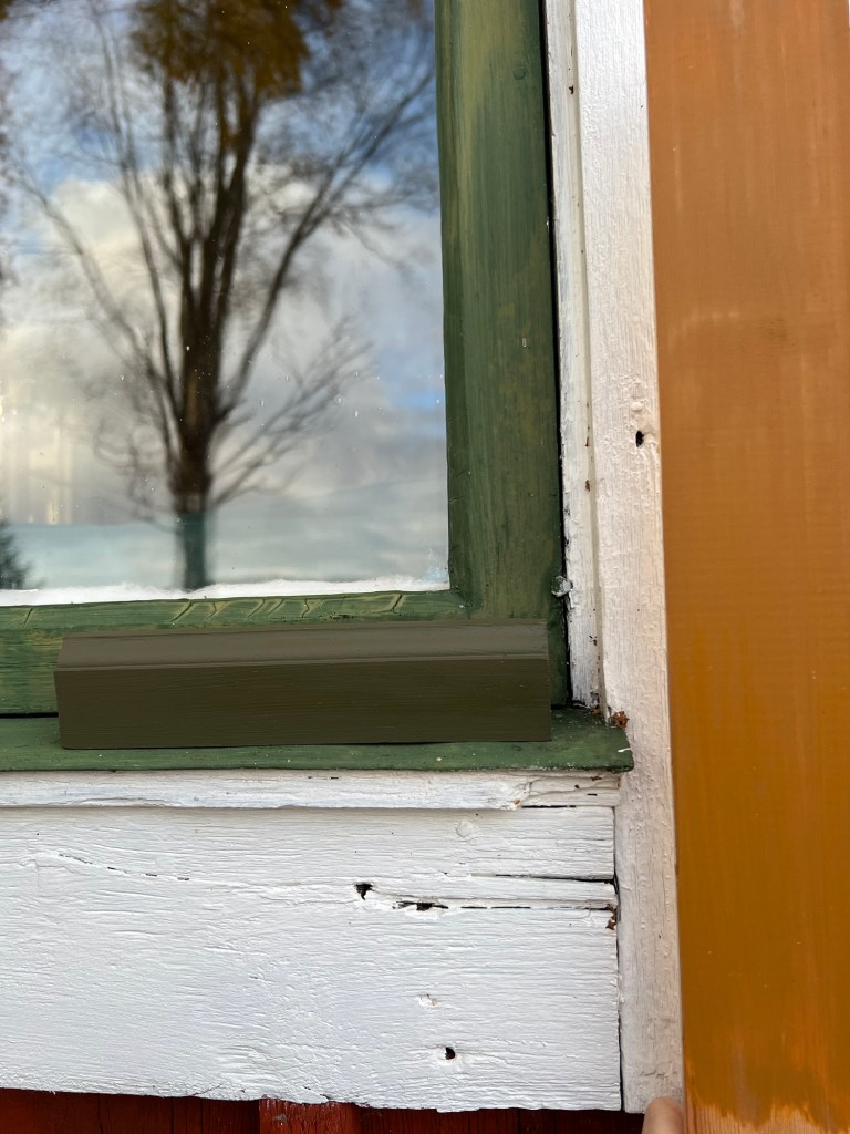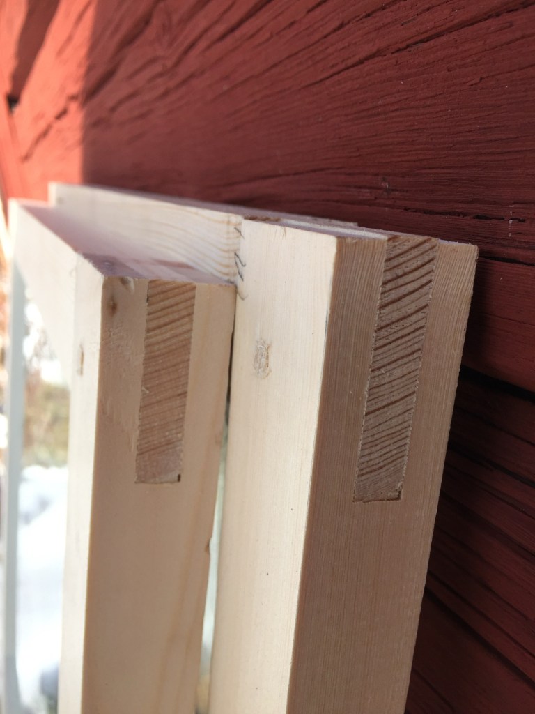 Vi använder främst linoljefärg linoljekitt och linolja vid ytbehandling av fönsterbågar alternativt efter kundens specifika önskemål, bild ovan är fönsterbåge i behandling med pigmenterad roslagsmahogny.